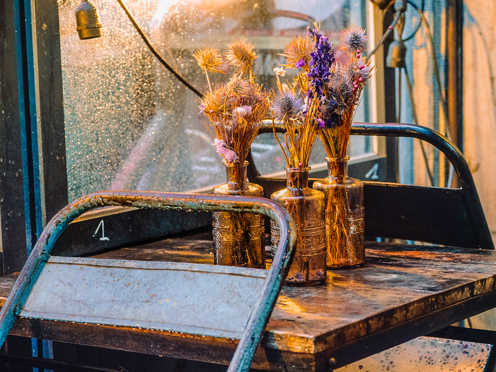 Try reducing blown highlights on the left side Chair, may look better.
