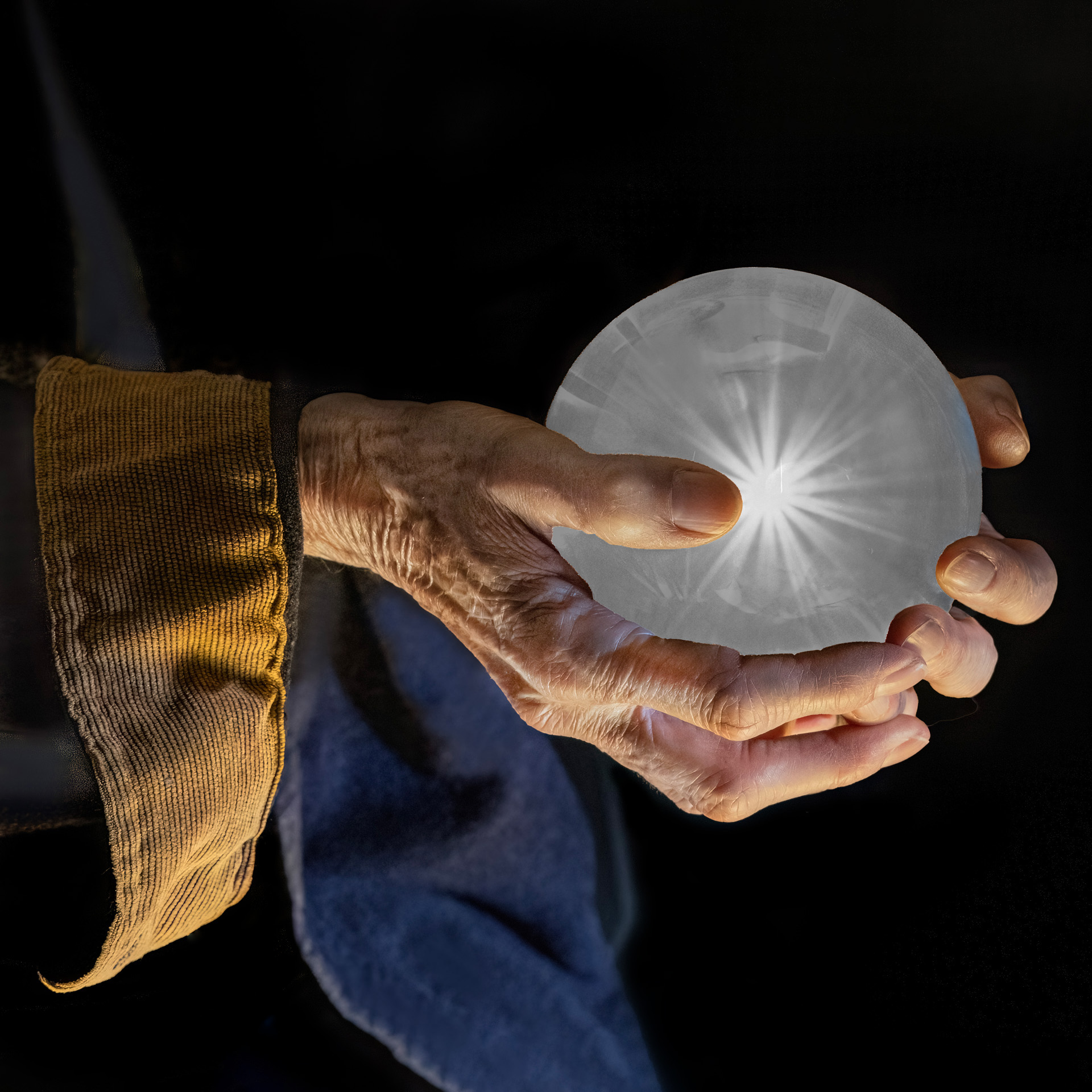 Read comments about Sleeve and the Blue cloth, IMO if you remove both then this simply becomes just another normal photo. What is required is some cleaning around blue cloth and the sleeve, I would keep it as it is, it's a powerful photo and let it remain the way you have processed.