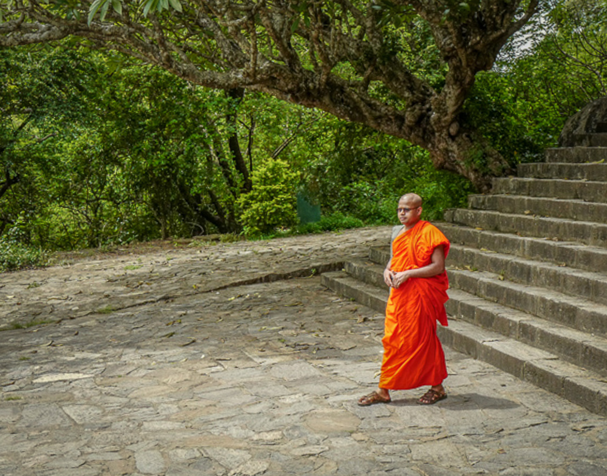 Nice shot. I prefer the open shadows but would prefer a tighter crop. I can see the monk better and still get a feeling of the space. What do you think? If I were to use your crop I think I would clean up the trash some more. It's nice you took out the orange can, but there is other stuff scattered around |