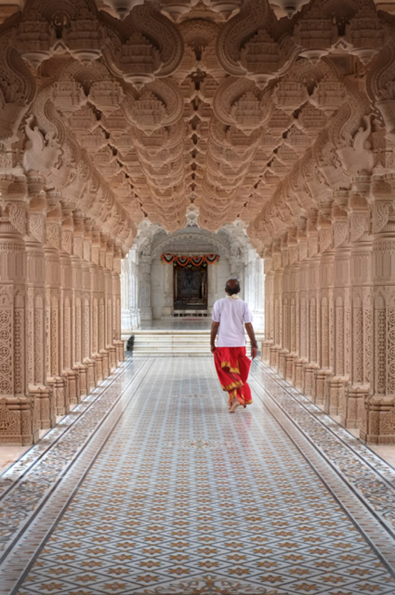 I went back to the original,vertical crop, lightened the door so we can see a Buddha... I think this looks like a journey toward something.I also removed the flag and darkened the highlights on the head a little. What do you think |