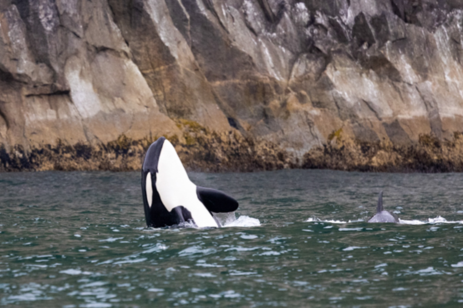 The position of the orca coming out of the water is perfect and I think you did a good job based on the conditions.