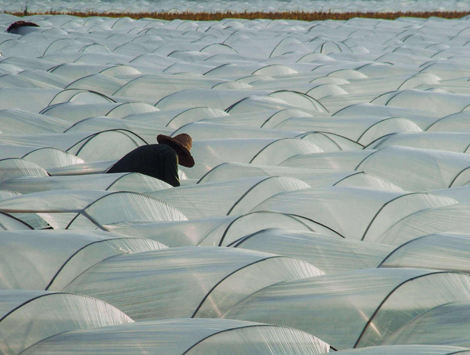 I really like the mono tones in your original, more so than the amber version. I would consider upping the contrast even more to bring out those curved lines and negative space.