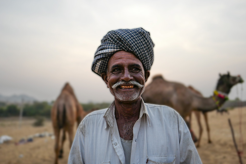 I'm on the fence about the figures in the background. They do provide a good contrast as they seem to be wearing more touristy clothing / backpack, vs the local man. But I think they would serve the overall image better if they were either more prominently featured in the frame, or cropped / cloned out. |