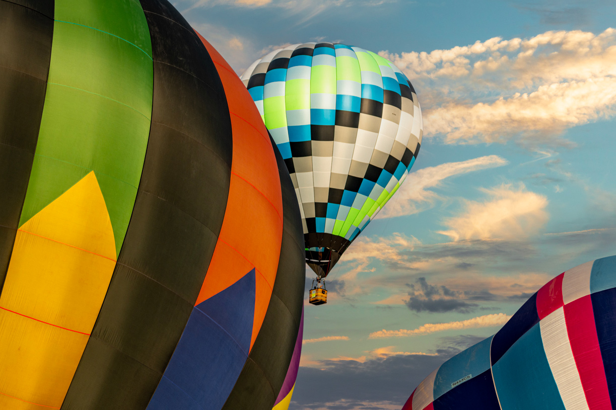 Pretty colors on this one. I think the sky replacement works well and looks natural to me. I think I'd prefer some separation but if you are going to put the two together in the frame, I would suggest cropping off some of the left side. We still get the idea of the foreground balloon but it draws my eye more into the image towards that background balloon. |