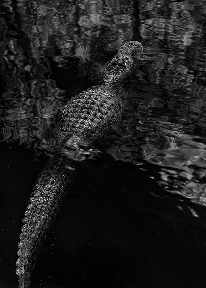 Ernie, Nice outcome wrt alligator's image quality in IR. I like the contrast between the dark water and the dappled light area at the top of the frame and wanted to retain the look but with a mod. I exported your image to LR and used the linear gradient filter to darken that part of your image so it didn't compete with the animal. I then used the radial filter on the alligators' head and body and lightened him up so it stands out against the dappled water.