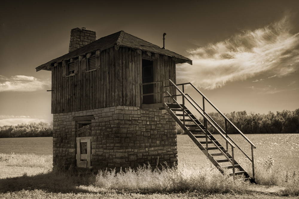 This image may be one of the first pure architectural infrared images that I have processed and shared. Typically my subjects are clouds, foliage, and a some sort of structure. So I am not sure right now if I was at fault for the softness or something happening at the wavelength my camera "sees" light. One simple check is to revisit the building with my DSLR.