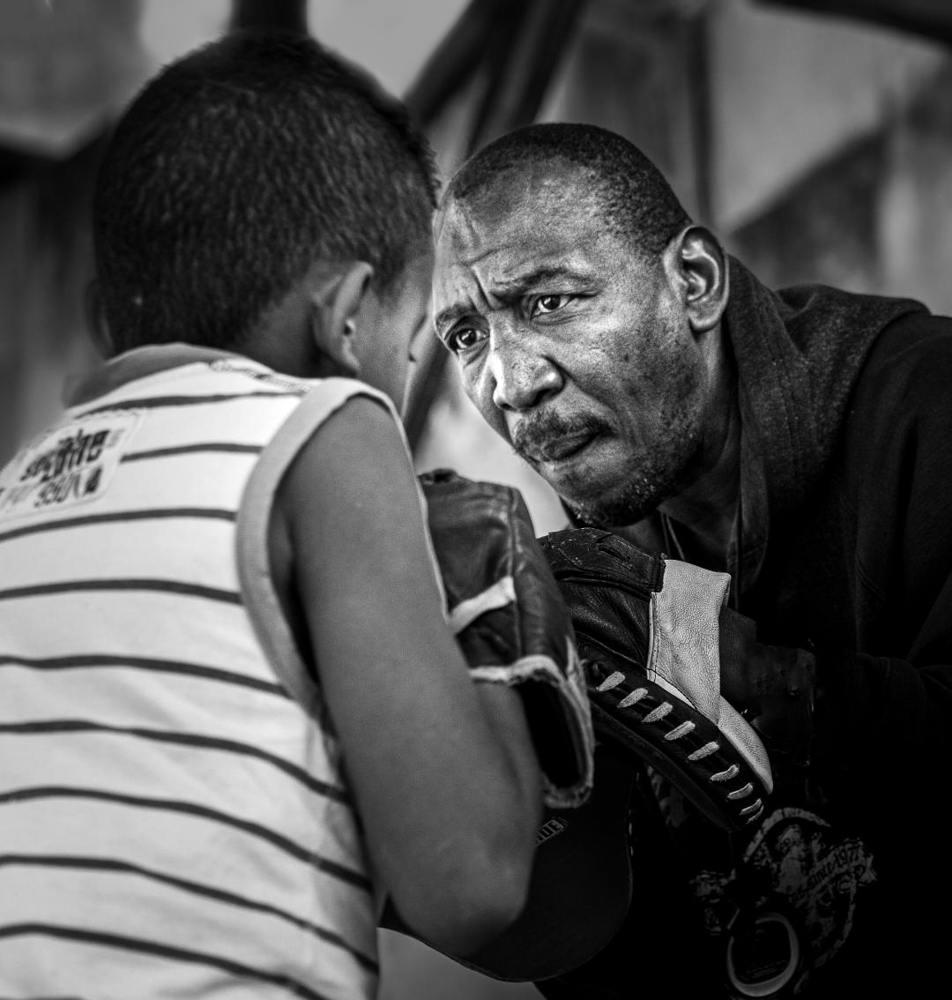 Using PS CC: I cloned out his watch, I painted over the light areas in the upper left, reduced the exposure of the scene overall but masked the coaches face so it was not affected, and then in NIK I used the Detail Extractor default preset which bring out details and lightens an image then back to PS CC, I masked the NIK change everywhere but the coach's face. I reduced opacity of that same layer to dial down the NIK impact -so its subtle