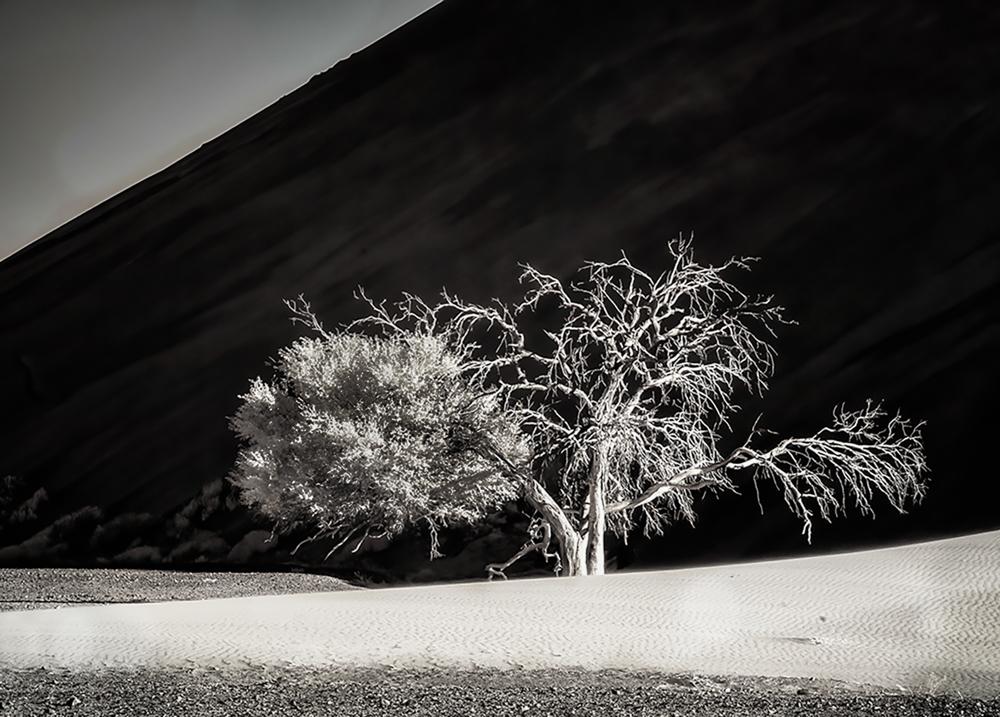 I like your approach of using tone to get your image rendered. In a perfect world, I would have liked to have the dead tree as the sole subject
