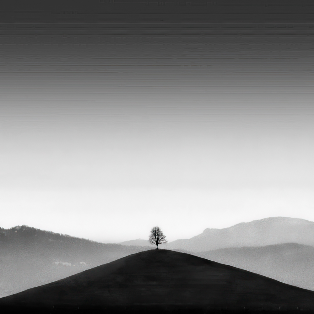 Your subject is clear, the triangular hill leads you to the tree etc. Square crop is spot on.