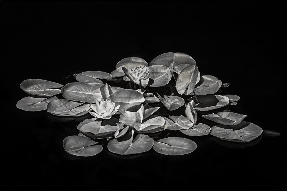 I played with your IR image and darkened the leaves using a couple of LR radial gradients. I think it helps and if you can keep the flowers a little "hotter" and in detail than the leaves I think it would work..I don't have enough pixels to get where I want to go.
