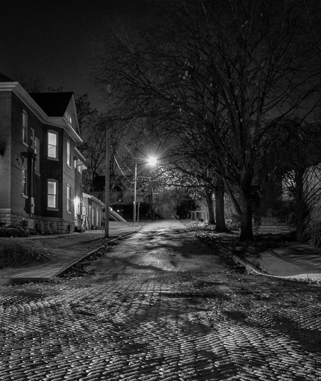 I used the LR landscape masking tool to create masks for the architecture and the sky. I dodged the former and burned the latter. I also brushed in a little white on the puffy cloud in the middle of the sky.