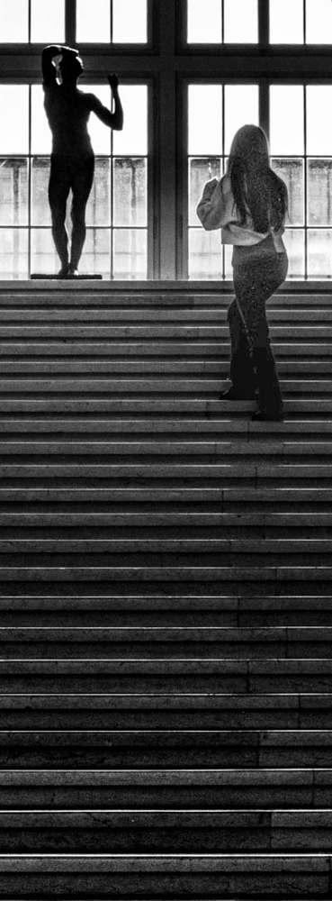 I like everything about this image - The question in my mind is should your subject be in the shadows due to the glass in front of her or should she be more apparent or not? I don't know if there is any artistic rules about this but I am interested in what our group thinks. I am in the camp to open her up a bit more since her top is partially visible already.